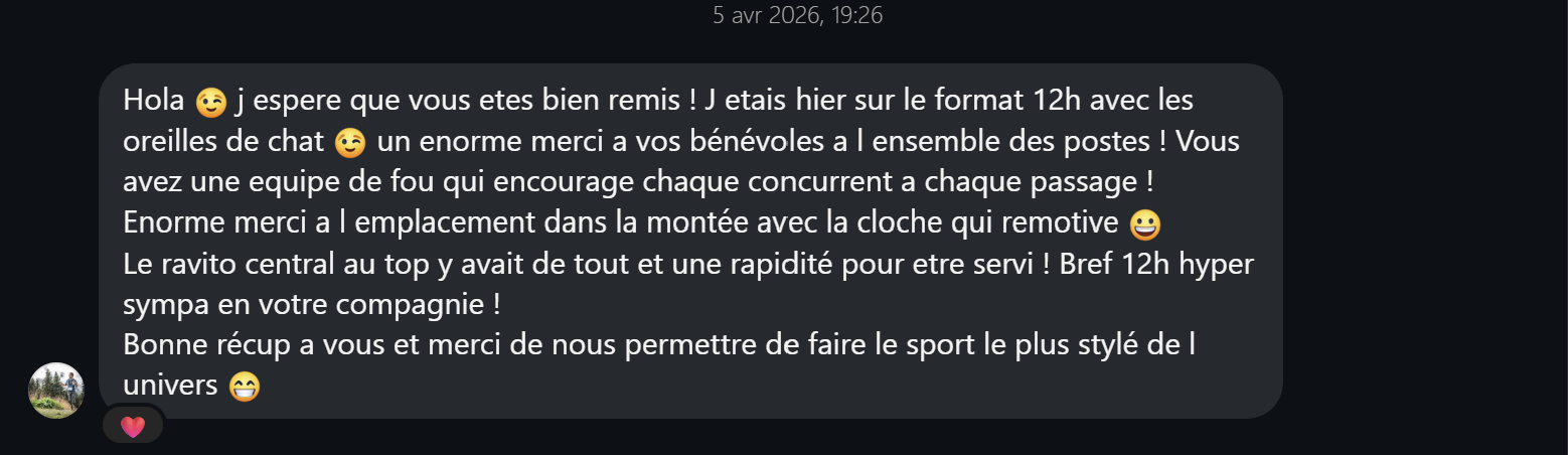 2 - La proximité de nos bénévoles issus quasi exclusivement du monde sportif associatif (trail, triathlon, cyclo & VTT), investis pour certaines et certains depuis 4 mois dans l'organisation et la préparation, a permis d'offrir le jour J une expérience sportive particulière aux participantes et participants. En effet, ils étaient 45 bénévoles pour seulement 200 participants ! Nous sommes particulièrement fiers de cette proximité et d'entretenir une forme d'esprit trail originel.